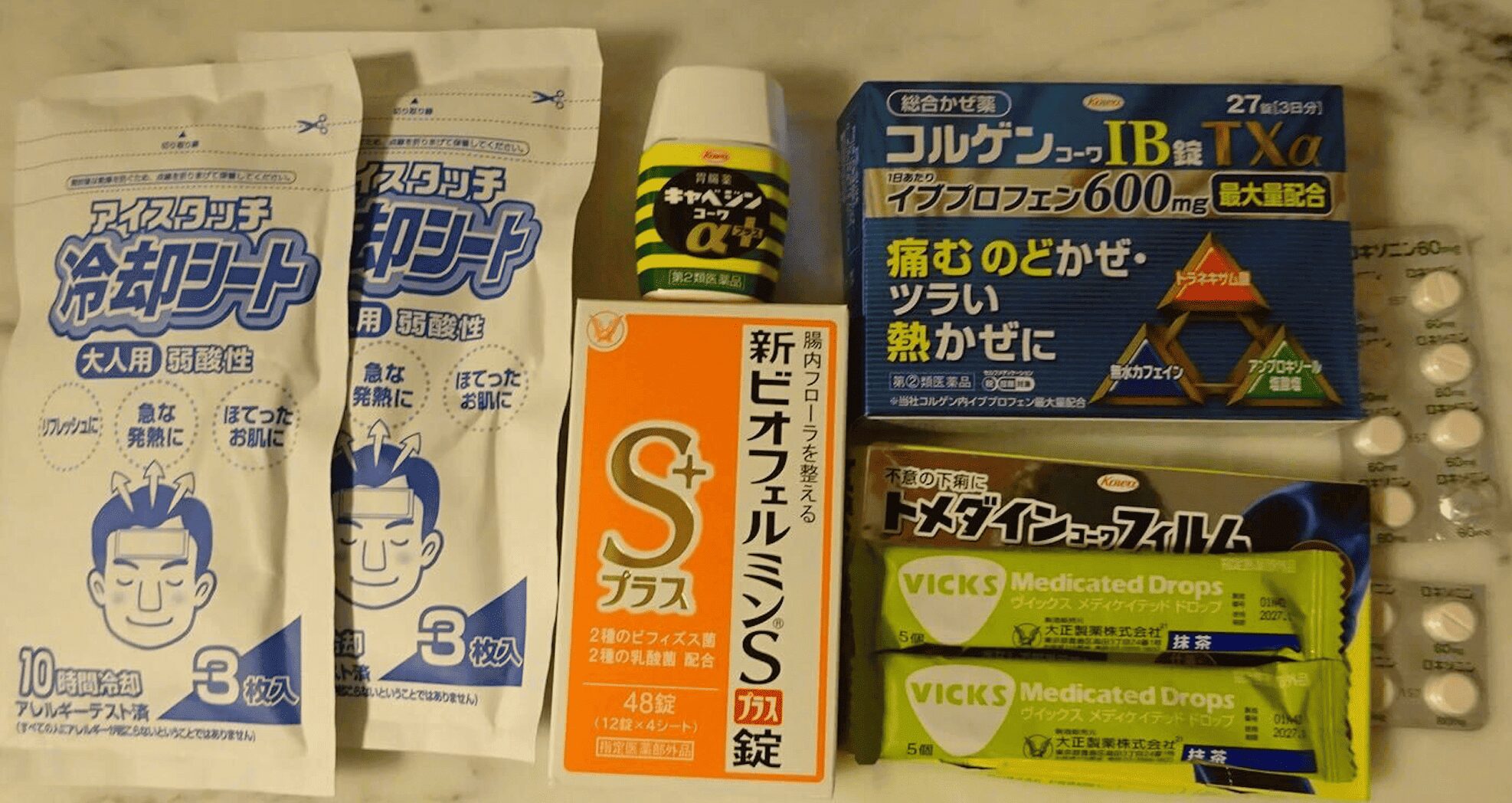| 薬(普段風邪引かない方も!) | 解熱剤・鎮痛剤・喉の痛みに効く系・胃薬・整腸剤・✈︎のど飴など。(写真参照) 去年高熱を出したので、風邪ひく前に毎日薬飲みました。葛根湯も飲んでました。 |
