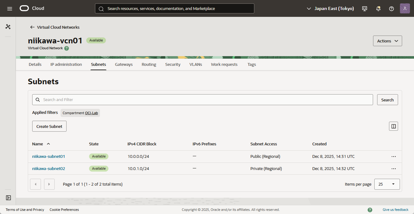 - VCNおよびサブネットが作成されていること。まだVCN を作成していなければ、以下のブログを参考に作成してください。