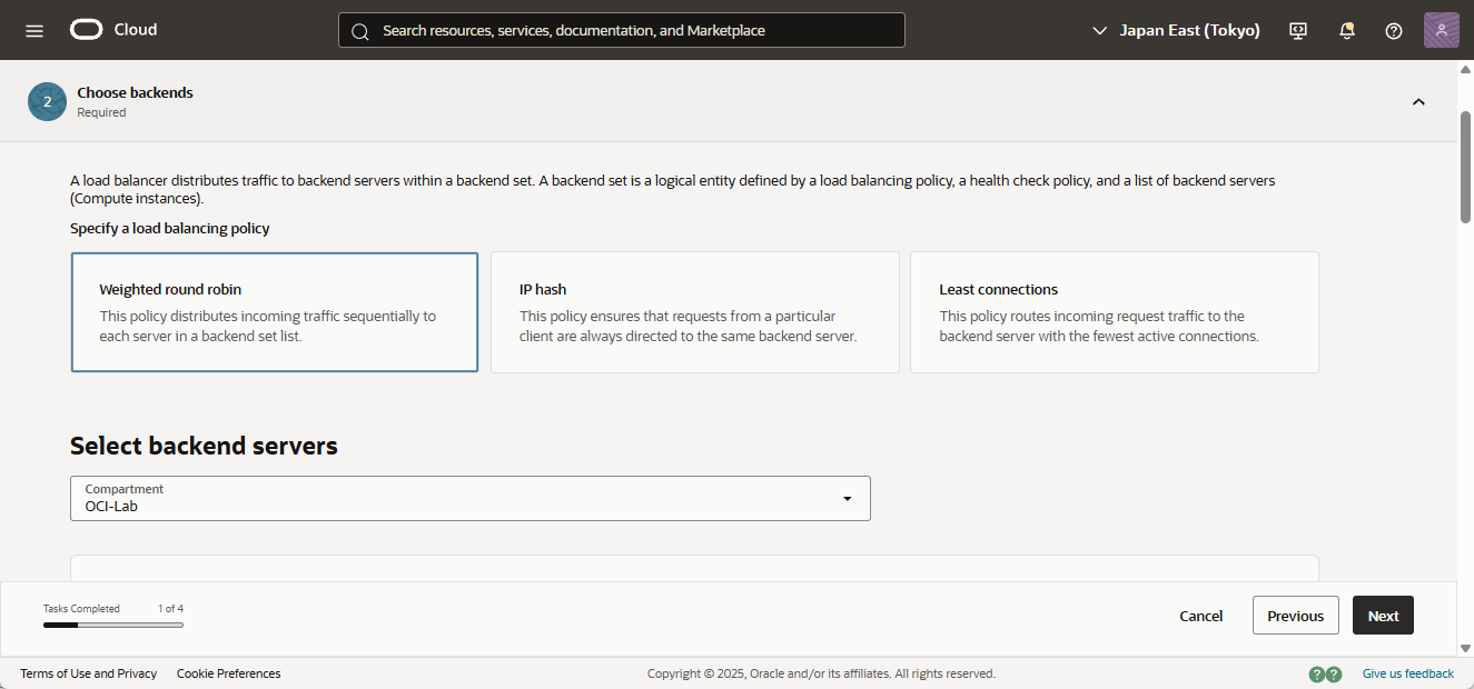 - ロードバランサーを選択し、「Backend sets」を選択します。