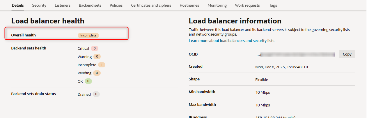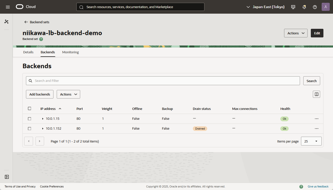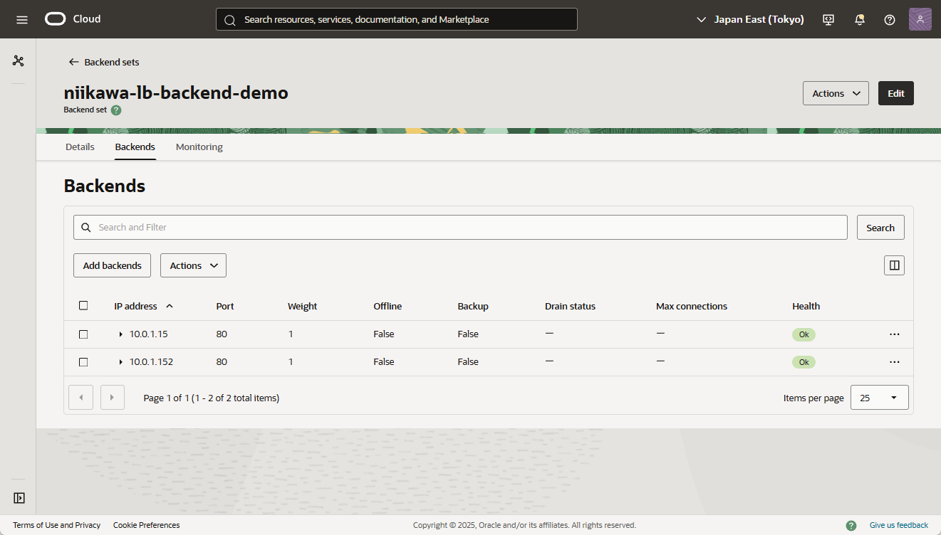- ロードバランサーのバックエンドのヘルスステータスを確認します。