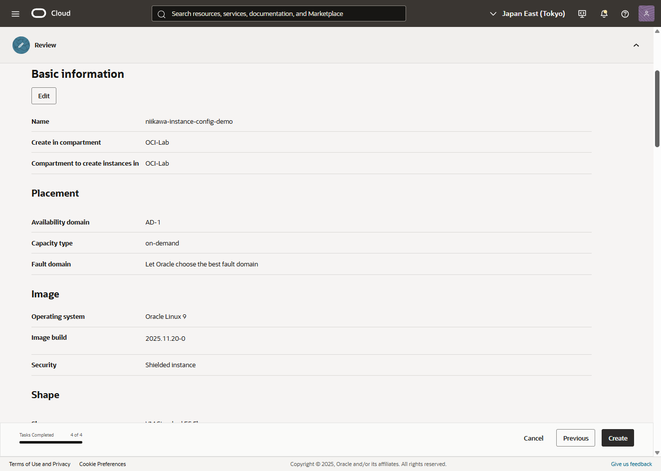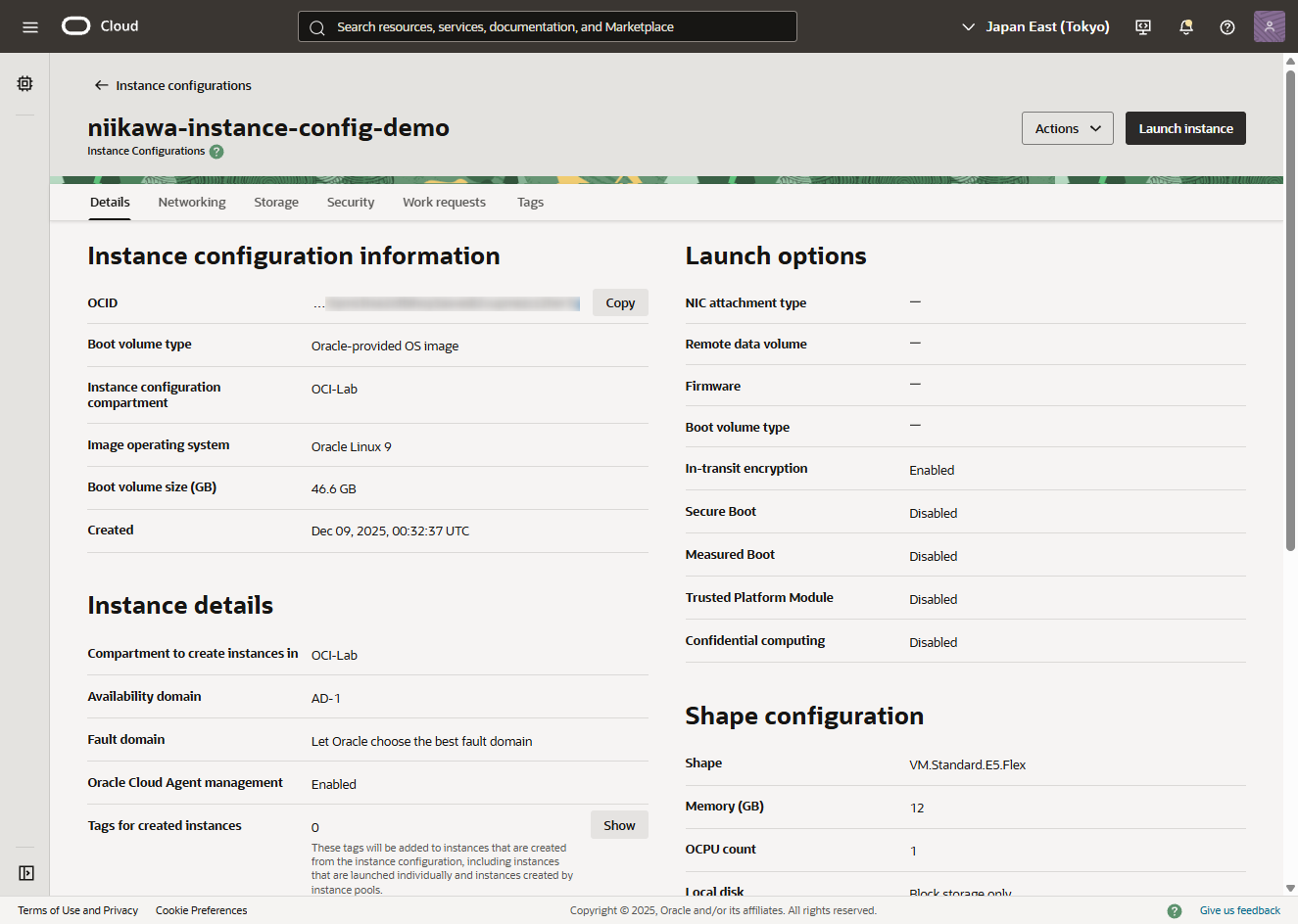 - 「Create instance configuration」を選択します。