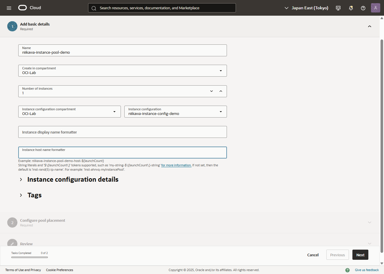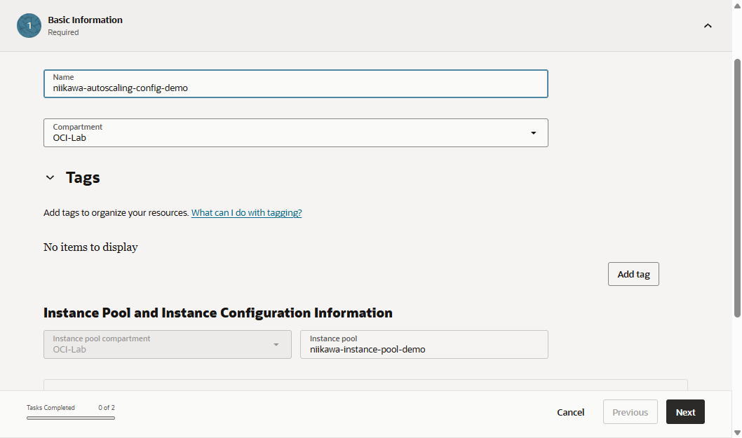 - 「Instance configuration」に先ほど作成したインスタンス構成を選択します。「Next」を選択します。