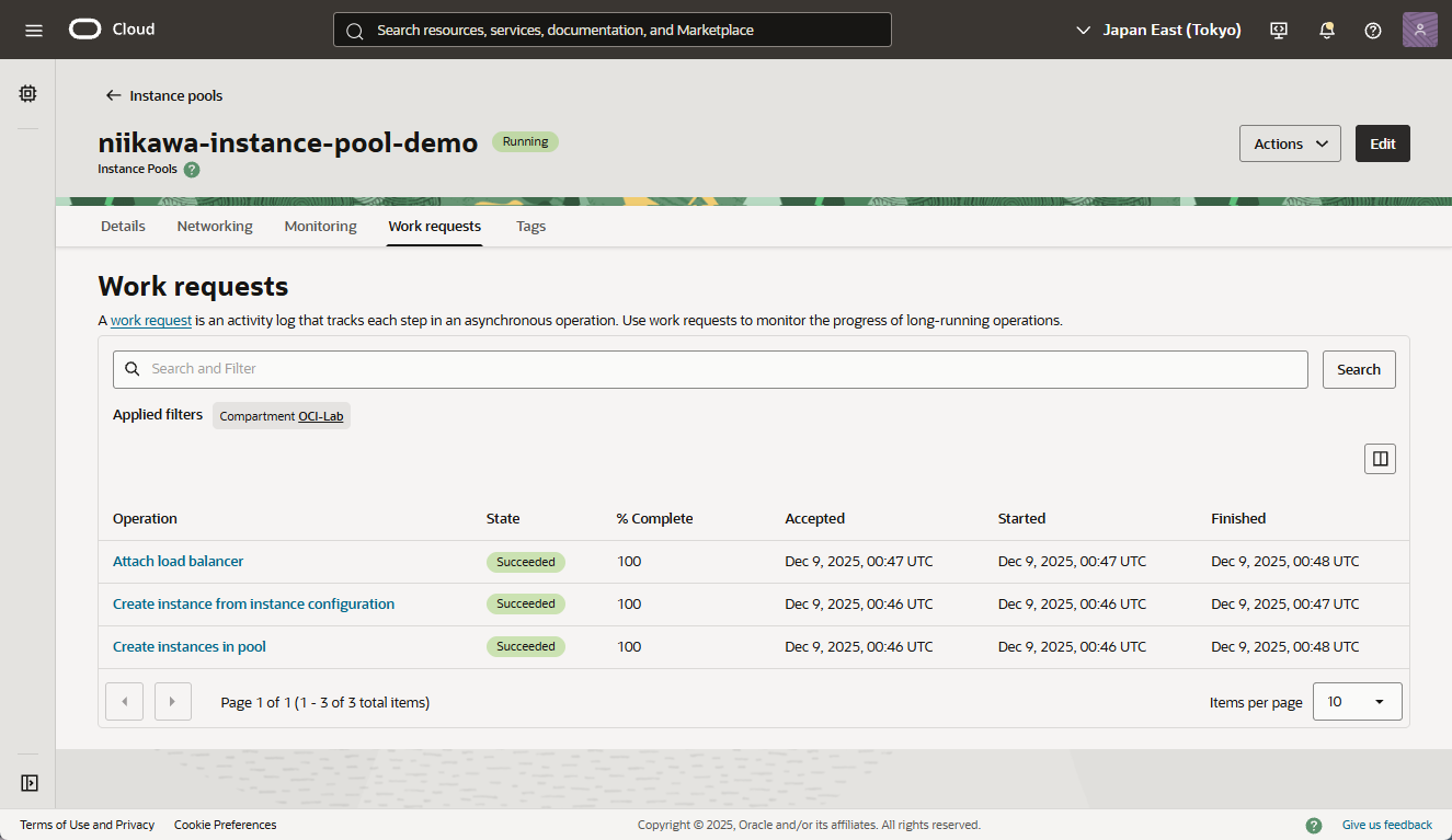 - インスタンスプールが作成されました。以下の画像は、インスタンスプール作成のジョブ画面です。