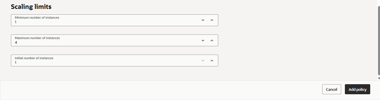 - Autoscaling policiesにおいて、「Add autoscaling policy」を選択します。