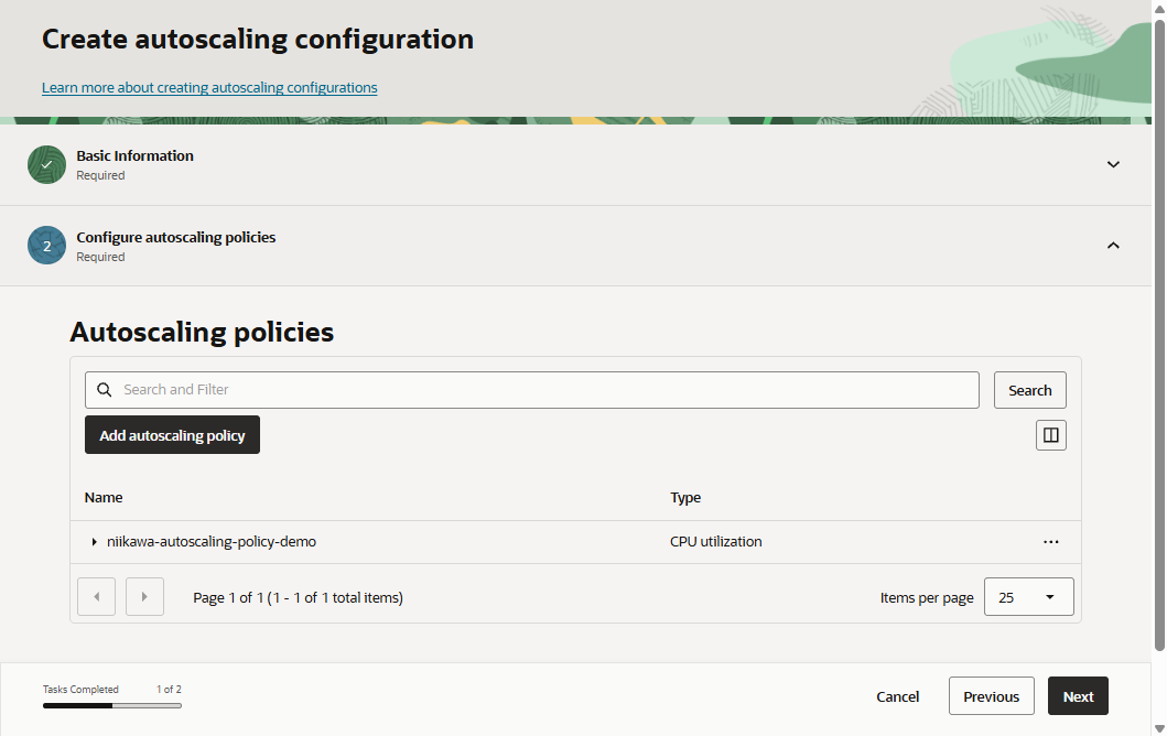 - Autoscaling policy が作成されました。「Next」を選択します。