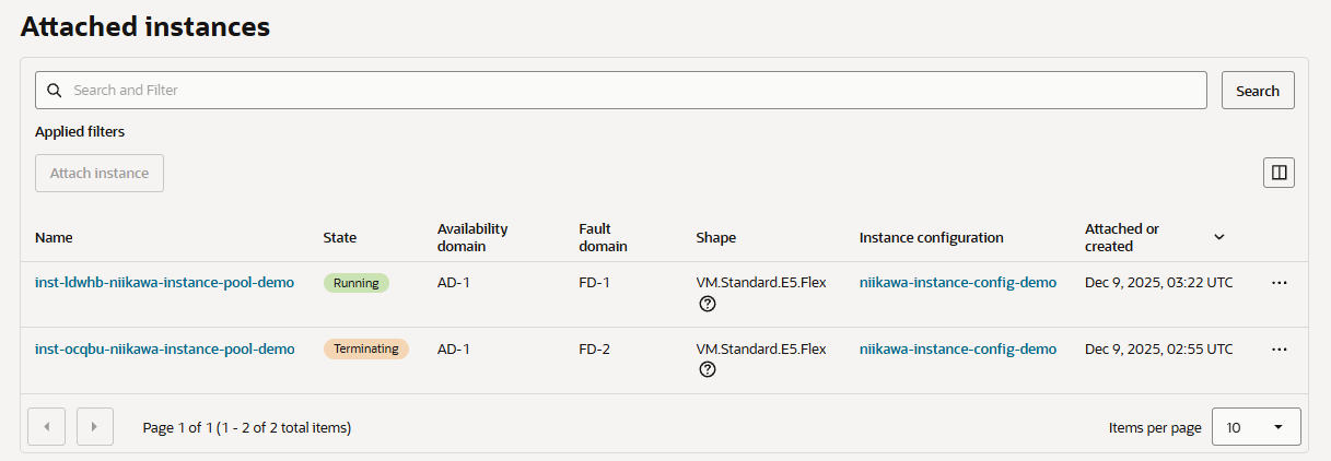 - 「Attached instances」を確認します。管理下のインスタンスが削除されたことを確認します。
