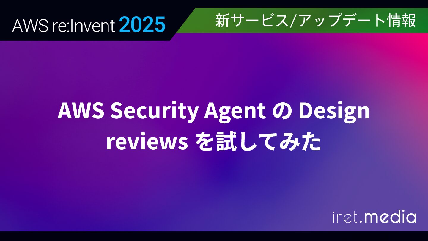 AWS re:Invent 2025 にて、AWS Security Agent がプレビュー公開されました。