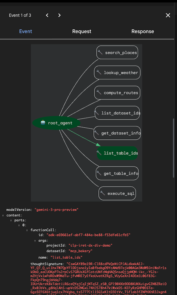 このように、root_agentから、list_table_idsや search_placesといったツールへ線が伸びています。
