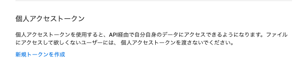 - アクセストークン(作った瞬間しか見れないので注意!)