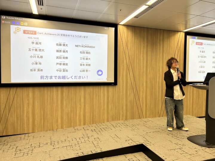 先に Google Cloud 資格全冠を達成した同期が、資格取得に挑戦している同期に向けて LT 登壇を行なうなどして、同期一丸となり全員で努力した結果、見事25新卒50人全員が Google Cloud 資格を1つ以上取得することができました!