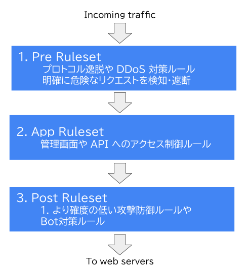アプリ担当は、「どの条件でリクエストを通したいか」だけを宣言的に記載すればよく、WAF のルールロジックを意識する必要はありません。