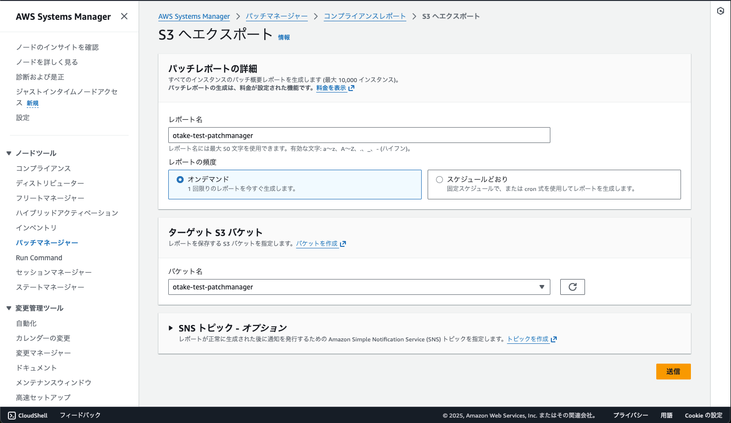 レポート名と対象バケットを選択して送信しましょう!
