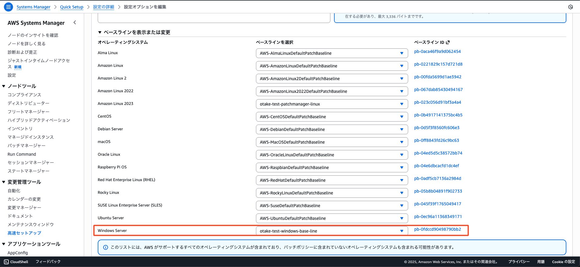 まずはWindows Server部分を先程作成したパッチベースラインに変更しましょう。