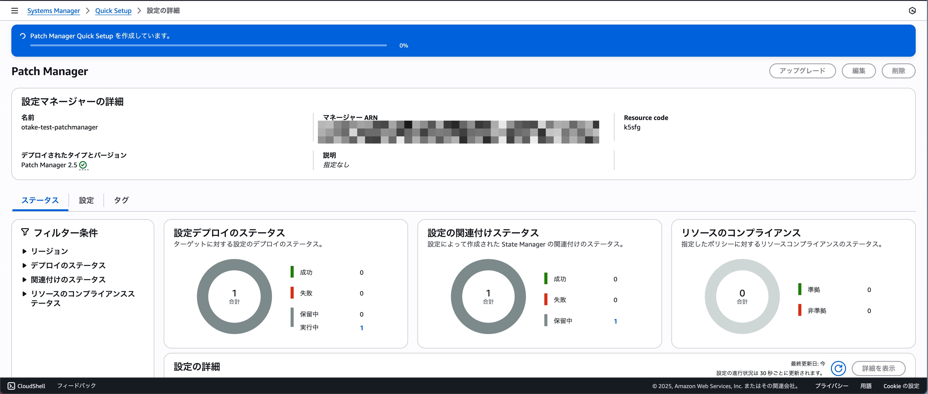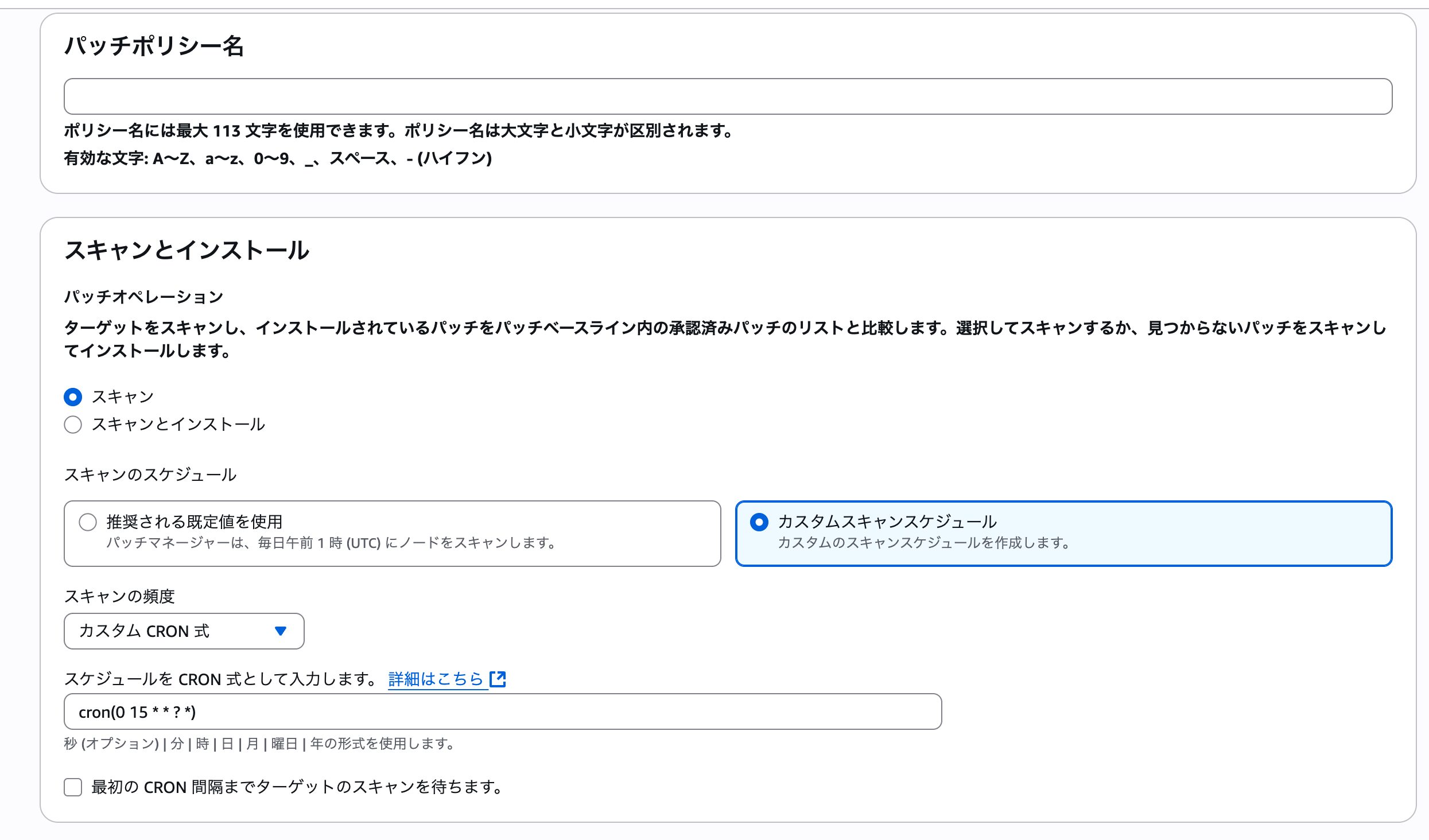 パッチベースラインができたら次はパッチポリシーを作成します!