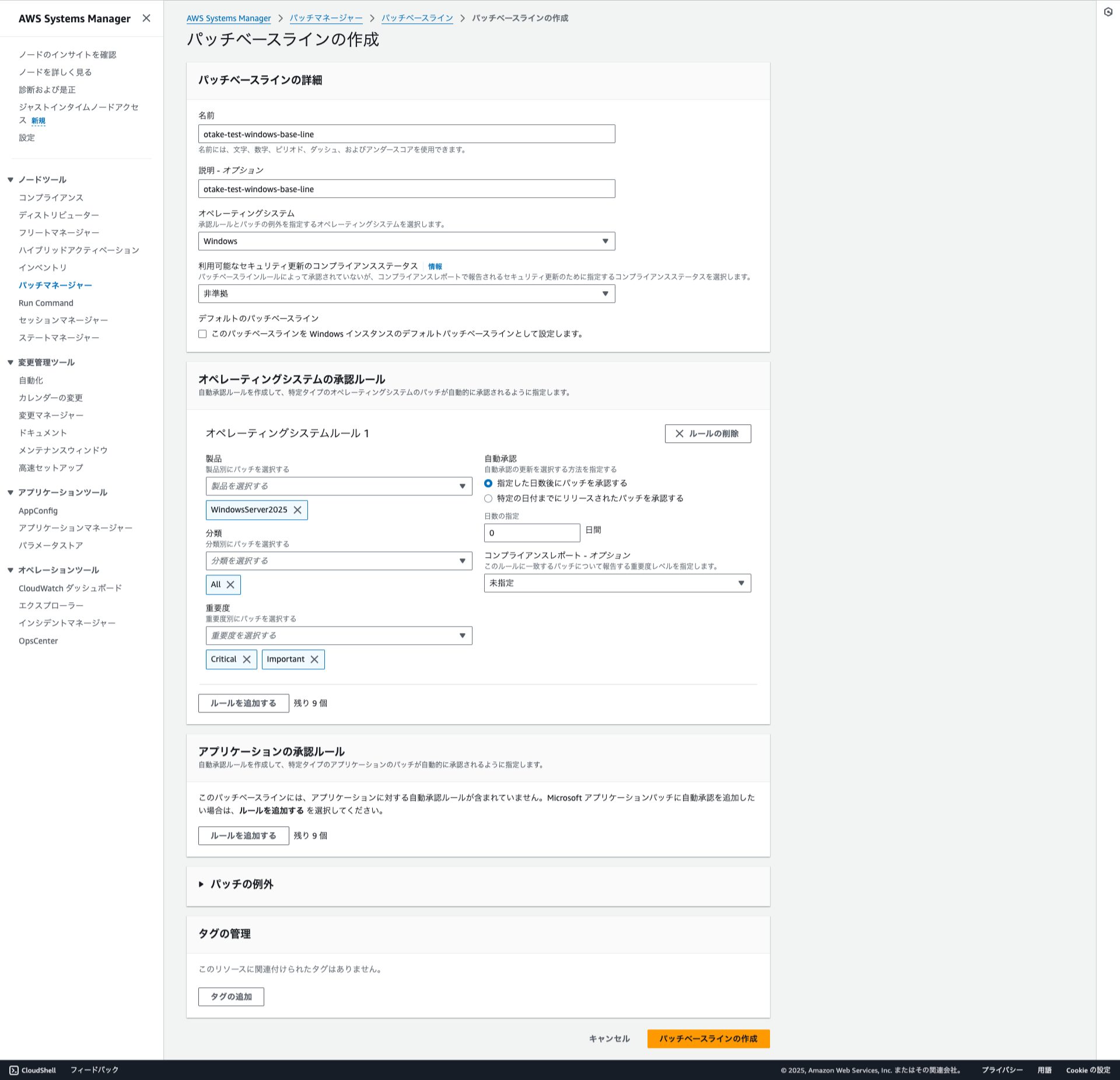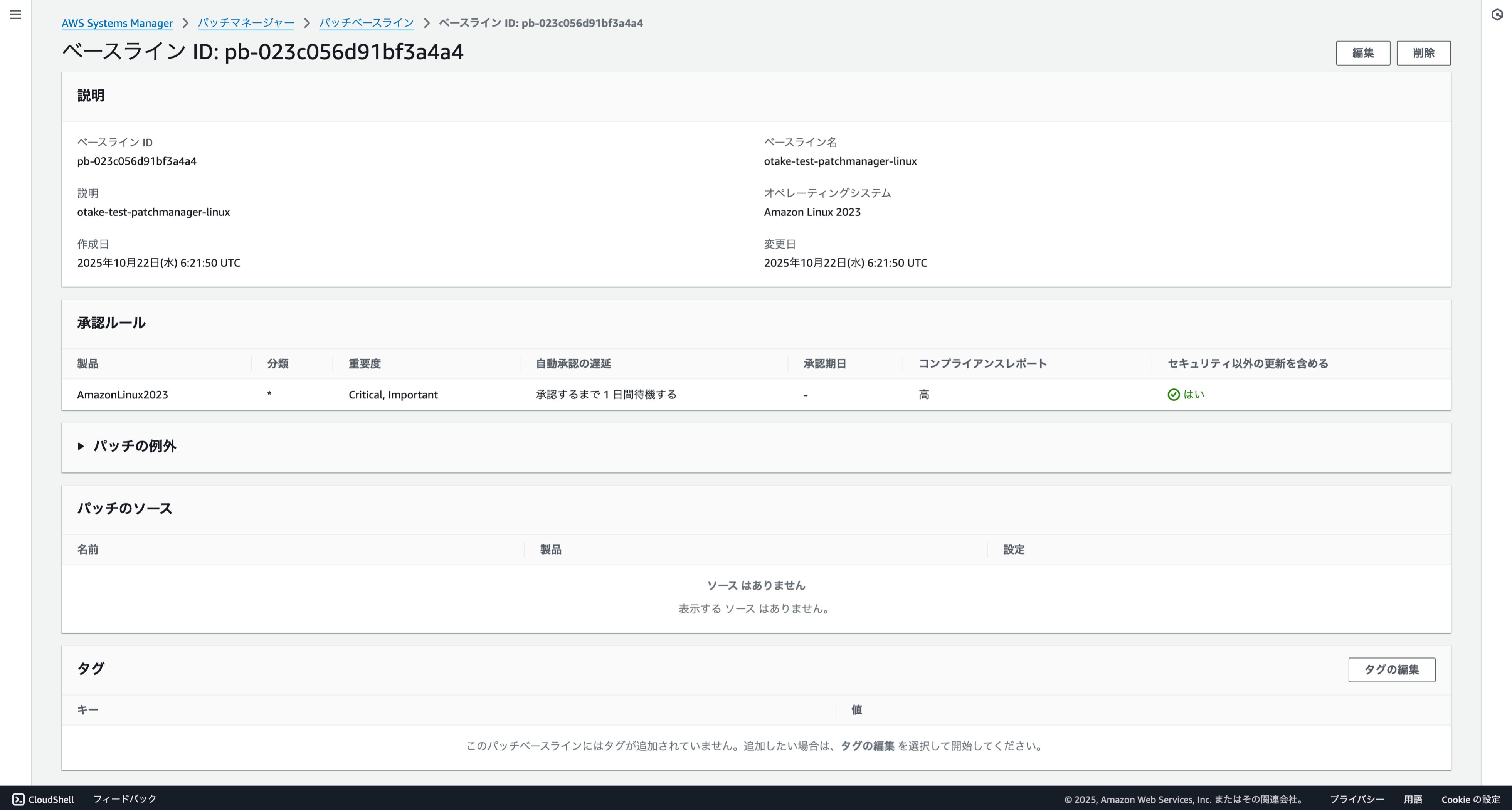 Amazon Linux 2023 のパッチベースラインを作成