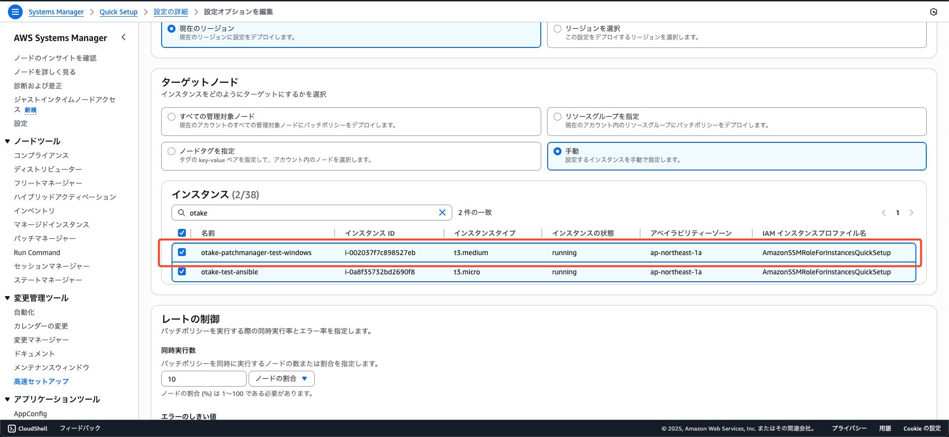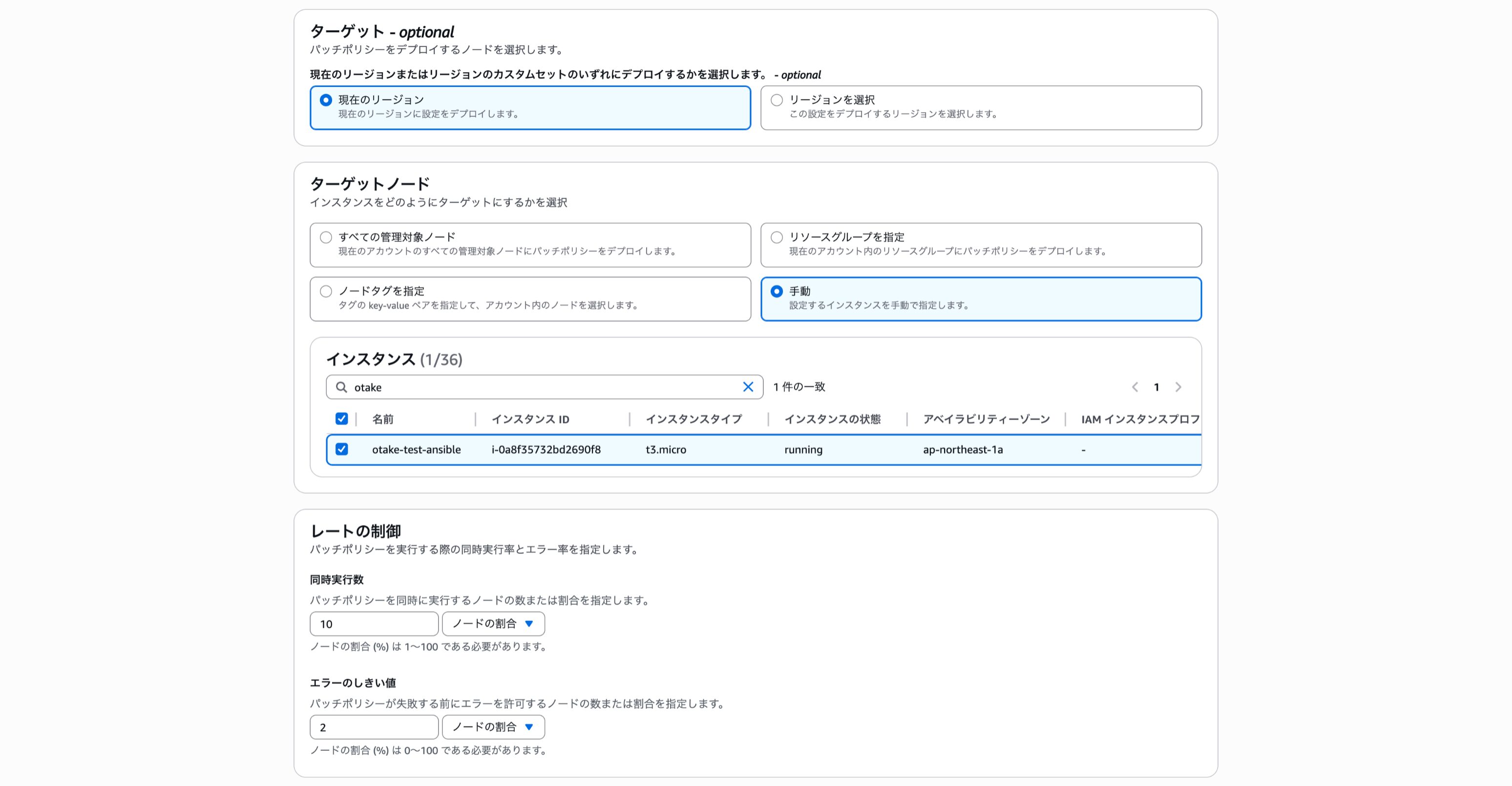 ここでは手動で対象インスタンスを選択します。