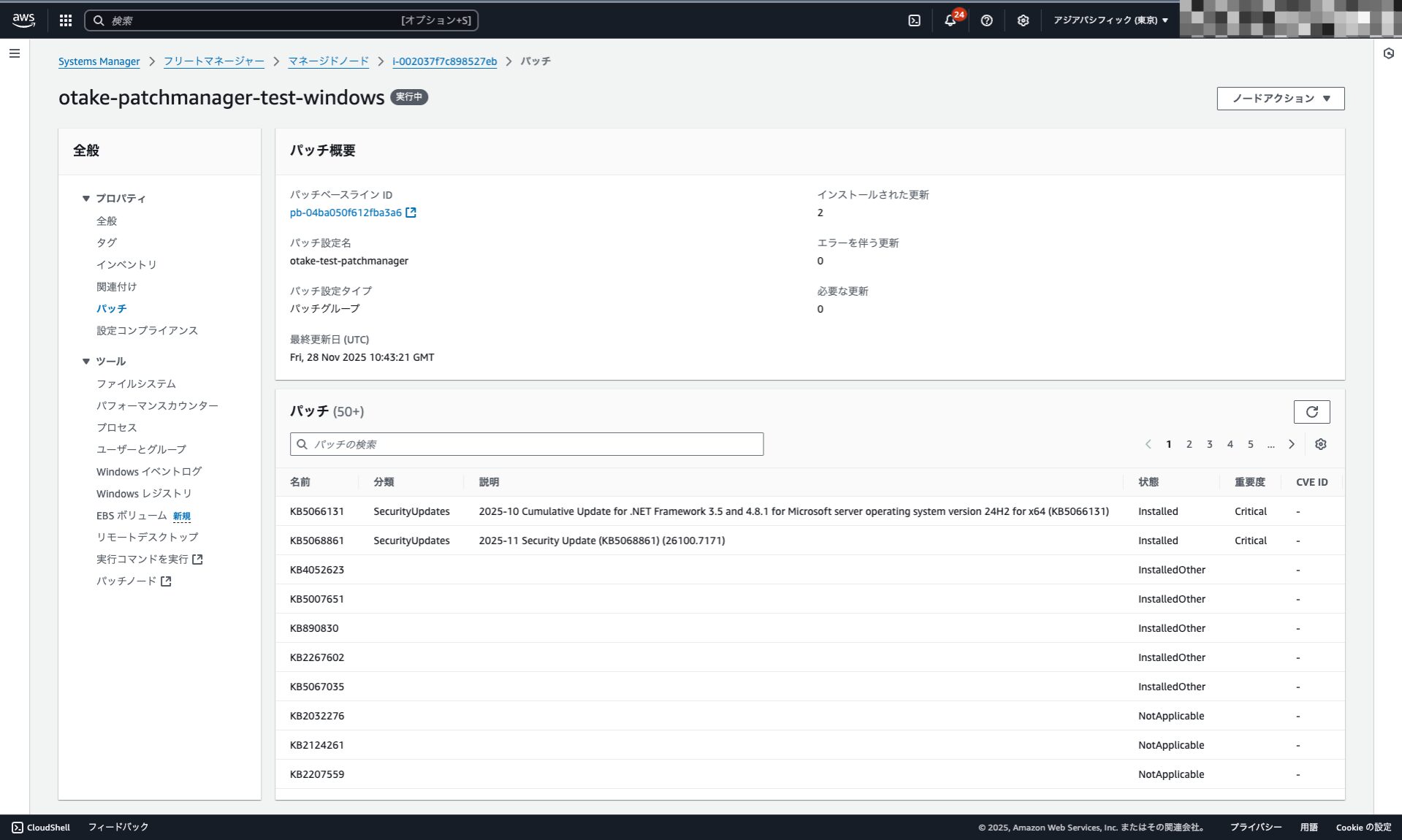 Windows Server 2025 のパッチベースラインを作成