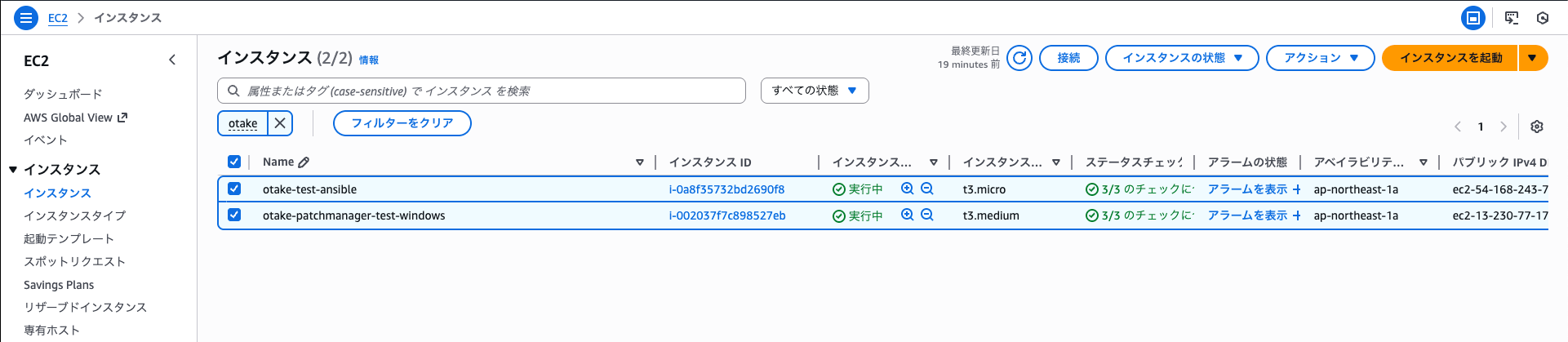 片方のインスタンスは別の検証記事で作成したものを流用しています。