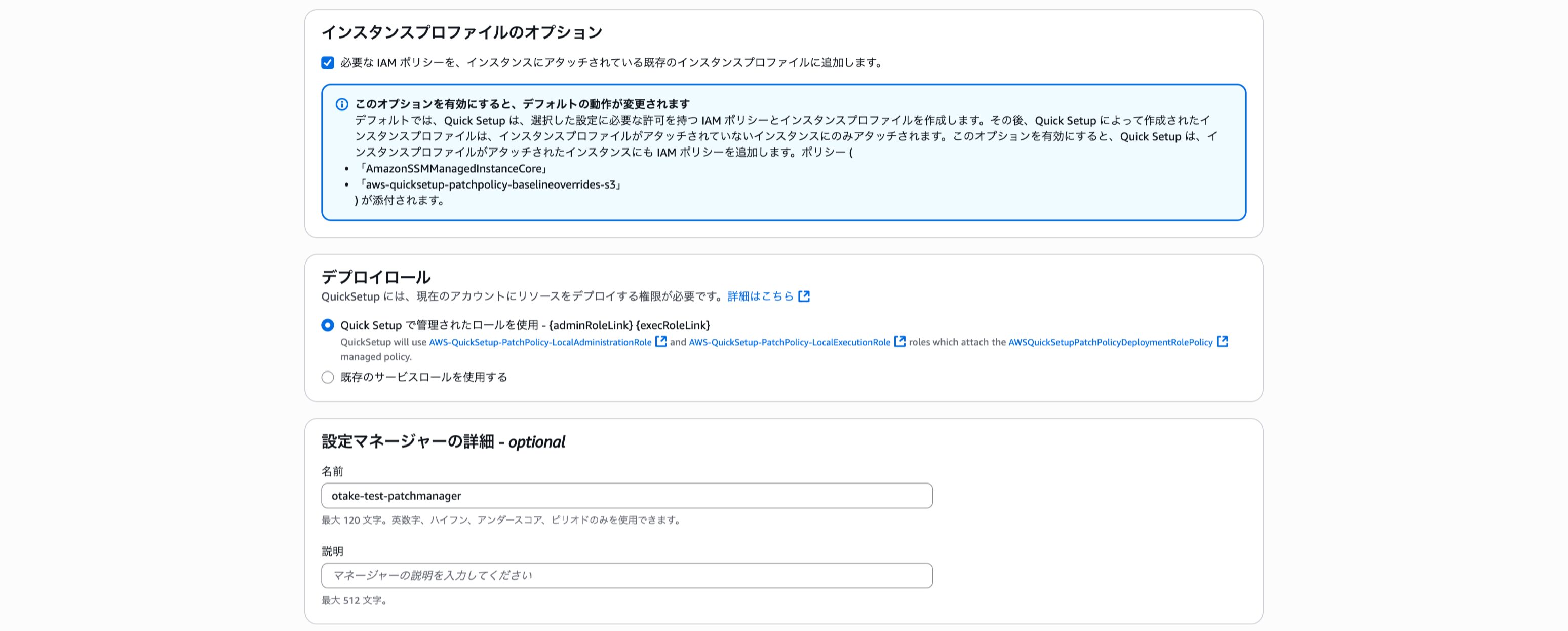 下記でQuick Setupが可能だったので自動で付与してもらいます。