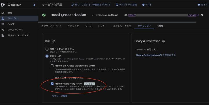 - 「Identity-Aware Proxy (IAP)」 セクションのトグルをオンにする。