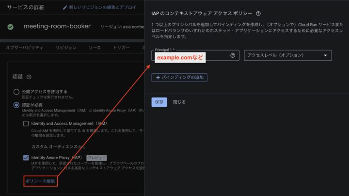 例えば、「自社の社員(example.com のドメインを持つユーザー)だけ」に見せたい場合は、プリンシパルに自社のドメイン(example.comなど)指定し、ロールを割り当てるだけで OK です。