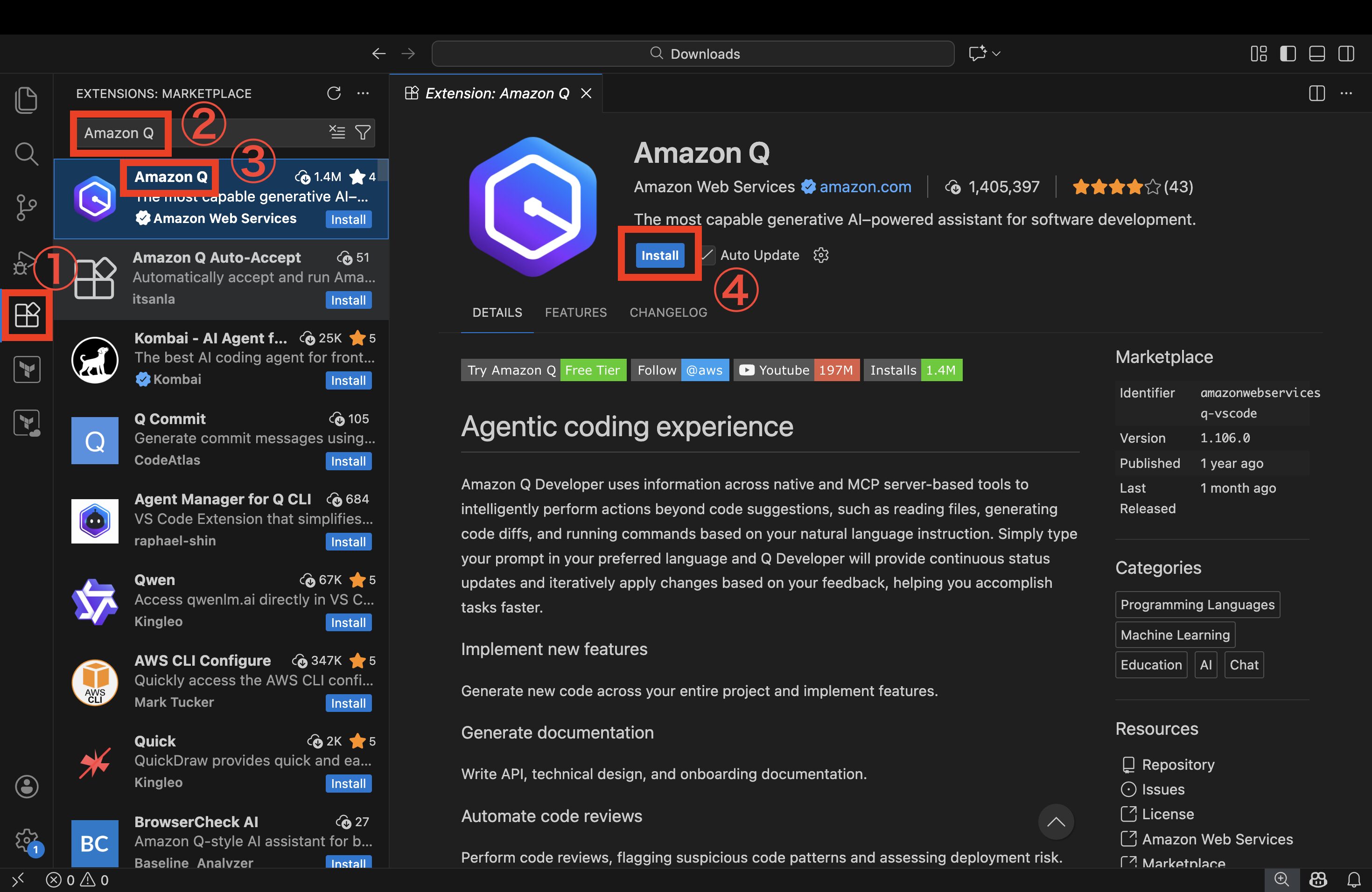 2️⃣ 検索バーに 「Amazon Q」 と入力