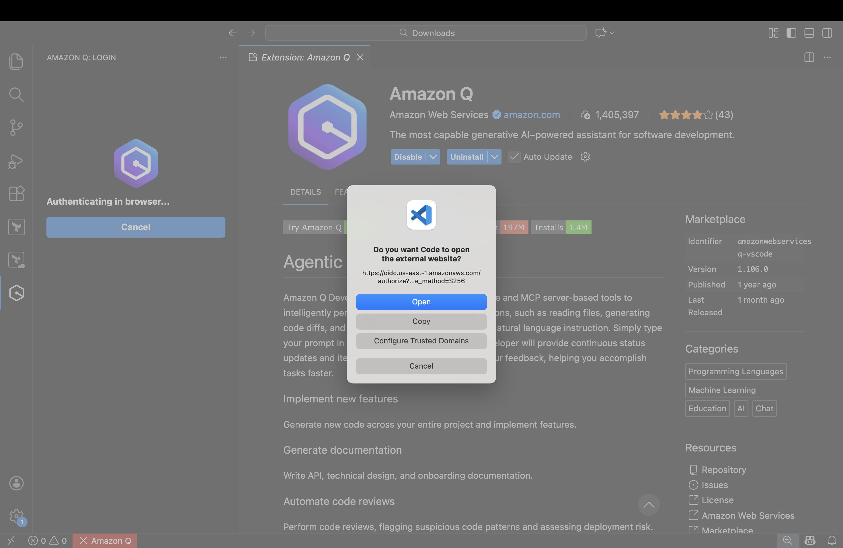 ブラウザで開くか確認されるため、「Open」をクリックします。
