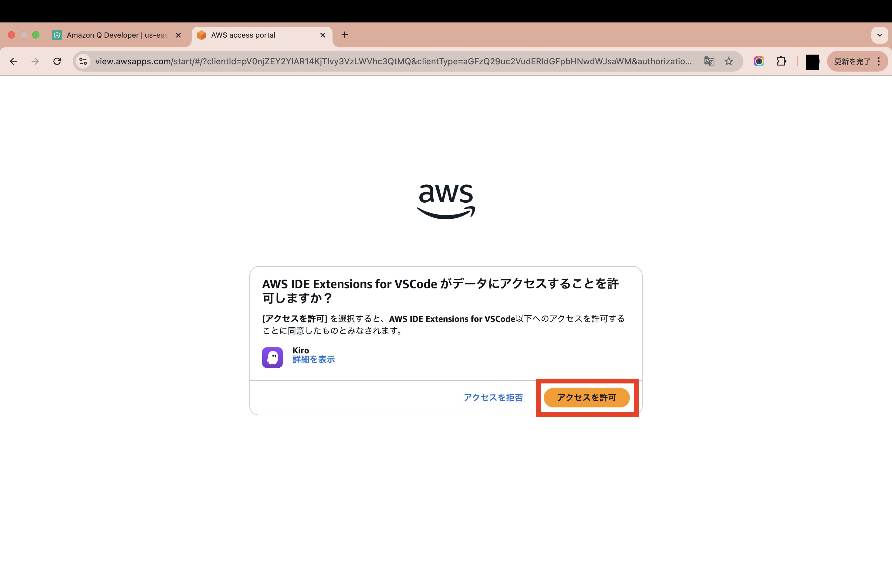 アクセス許可を求められるので、「アクセスを許可」をクリックします。