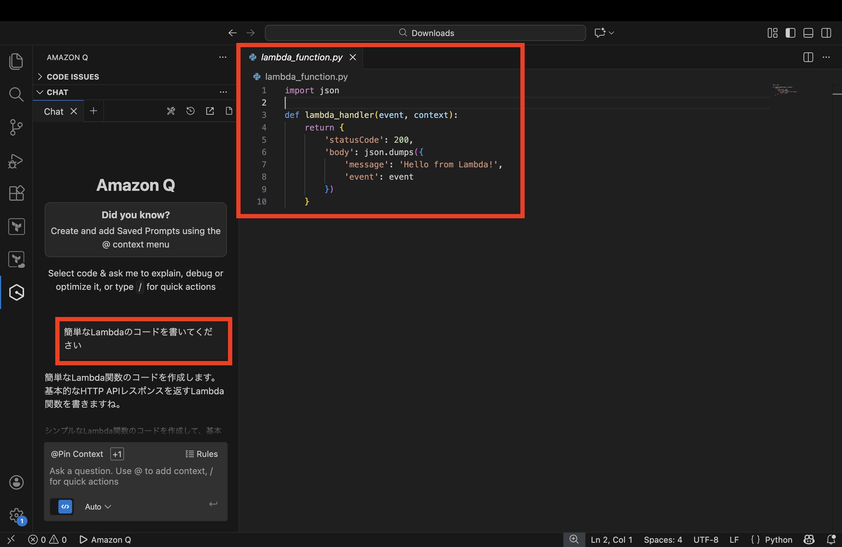今回、Amazon Q を使って開発を試したところ、ほとんどコードを書かずに Lambda を動かすことができたため、その体験を紹介します。