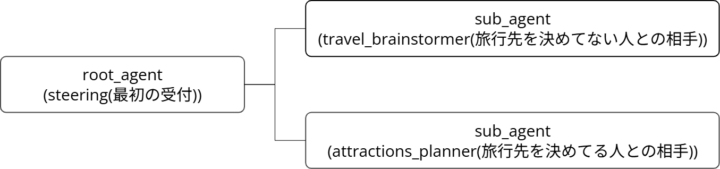 sub_agents=[travel_brainstormer, attractions_planner]で子のエージェントを指定している。