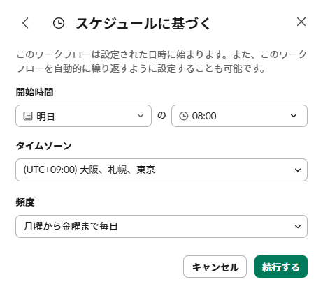- 頻度:「月曜から金曜まで毎日」(時間は任意)