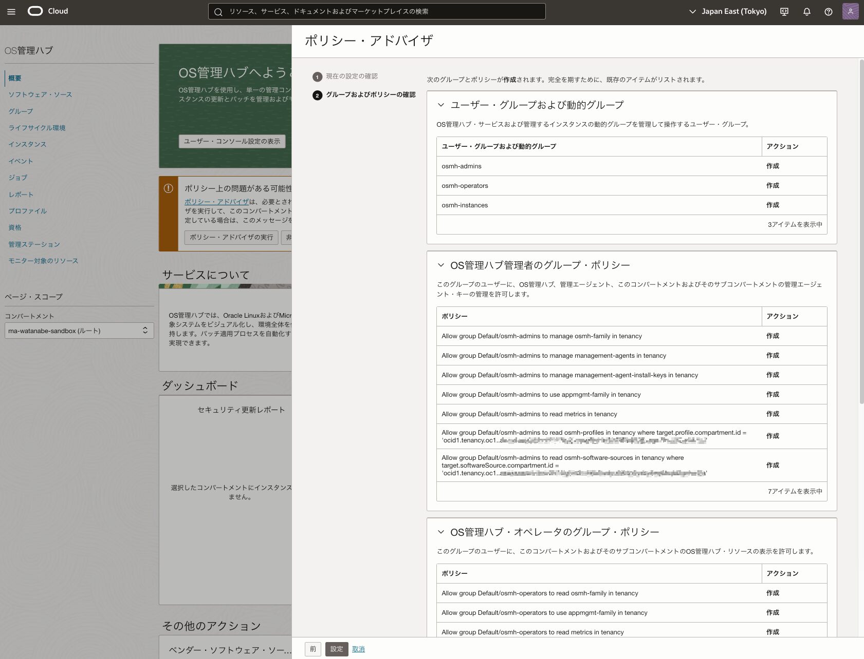 作成されるポリシー/グループの詳細