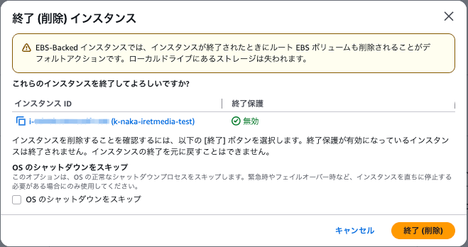 - 3.対象EBSボリュームがアタッチされたEC2を削除
