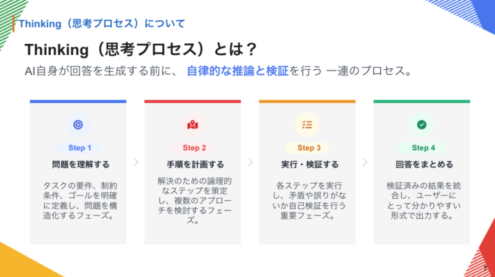 - AIが回答を出すまでの「自律的な推論と検証」を人間が確認できるようになりました。