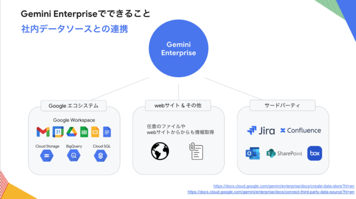 - 入力データが学習に使われないのはもちろん、既存のGoogleドライブの権限をそのまま引き継げるなど、エンタープライズ基準のガバナンスについても詳しく解説。