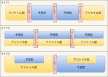更に予測型内に一部の要素をアジャイル型で実施し、その逆を実施するタイプ(図のタイプ3)もあります。