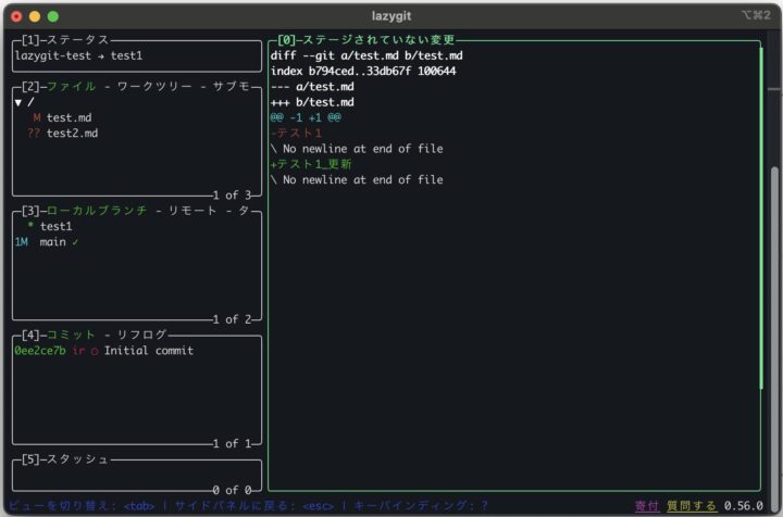 Lazygitと標準のGitコマンドでの入力時間の差は数秒の差だとは思いますが、日々何回も使用すると