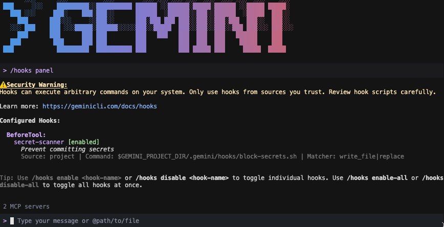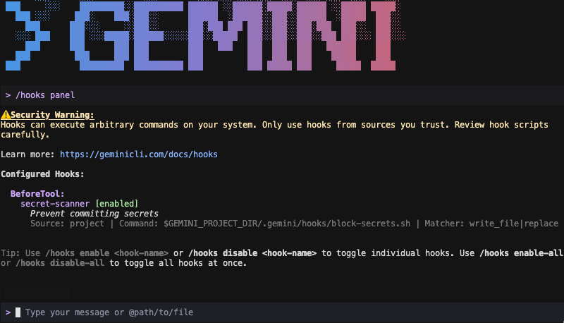 "command": "$GEMINI_PROJECT_DIR/.gemini/hooks/block-secrets.sh",