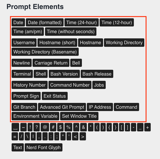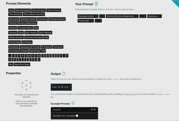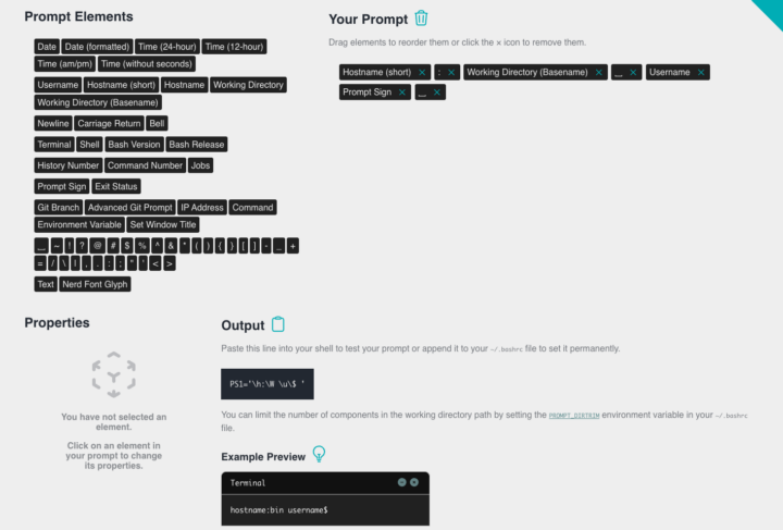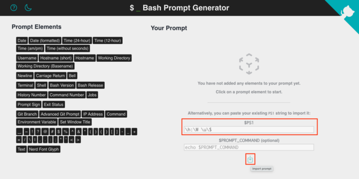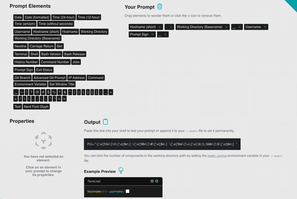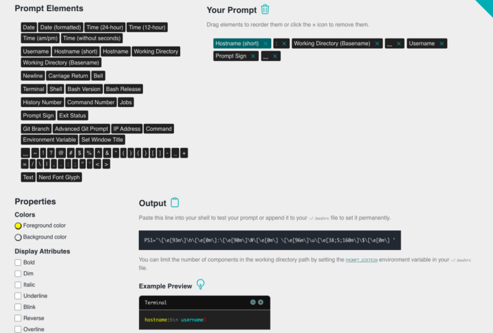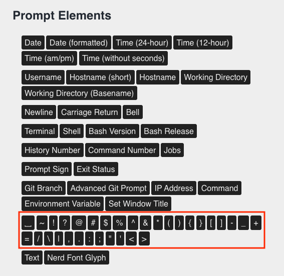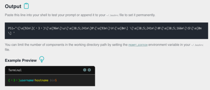 Bash Prompt Generatorを開くとPS1環境変数を入力する箇所があるので