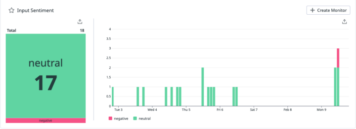 これで、Datadogに送信されたユーザープロンプトに対して、自動的に Positive / Neutral / Negative のラベル付けが行われるようになります。