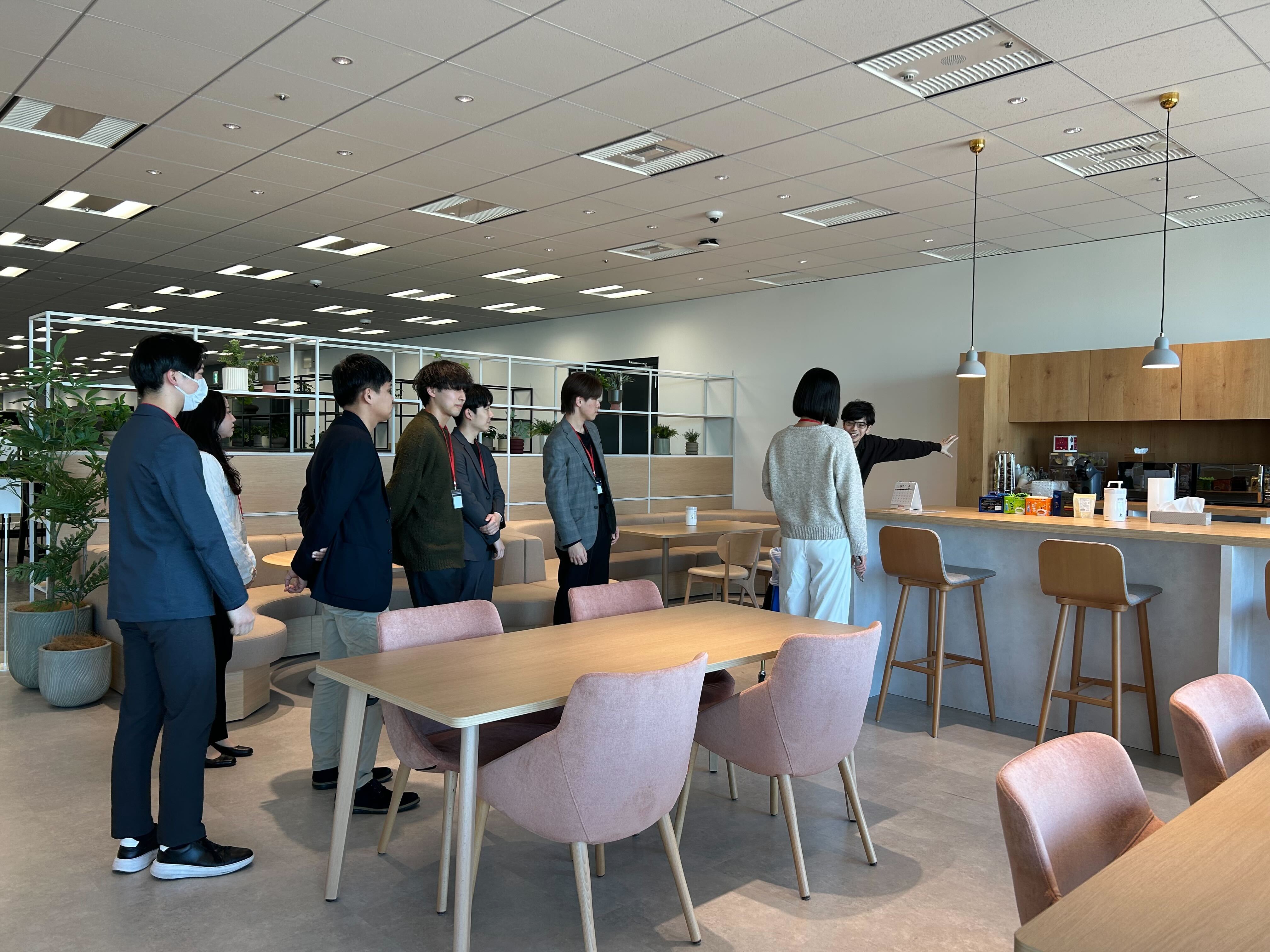 オフィスを巡っていく中で、設備について知るだけではなく、実際に新オフィスで働いている社員の様子を見ることで、4月から社会人として働くイメージがより湧く良い機会となったのではないでしょうか。