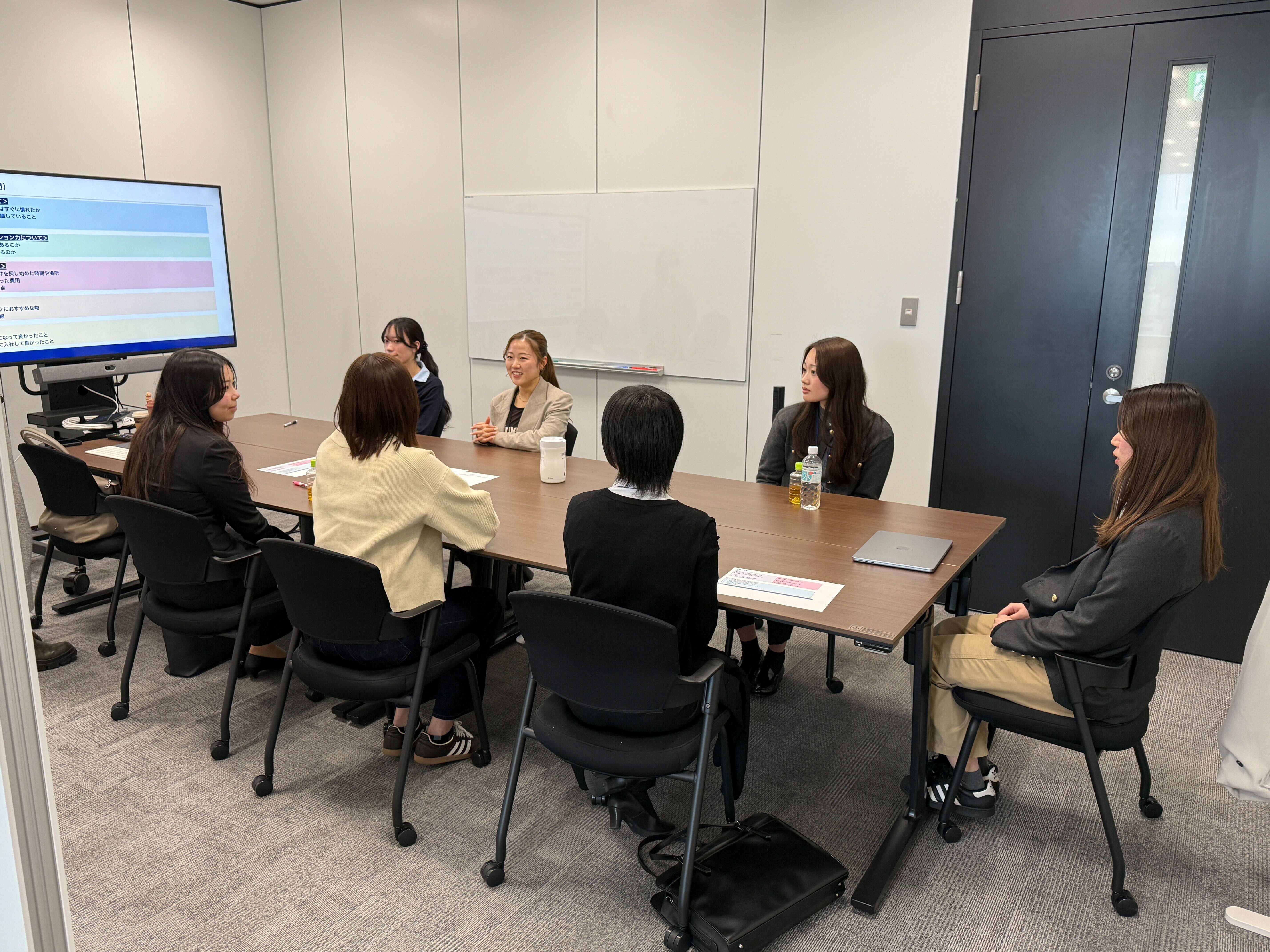 途中で先輩社員が入れ替わったりしながら、内定者からの事前準備でリストアップしたたくさんの質問に回答してもらいました。