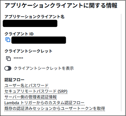 1. ユーザプールの設定画面でアプリクライアントを作成する。
