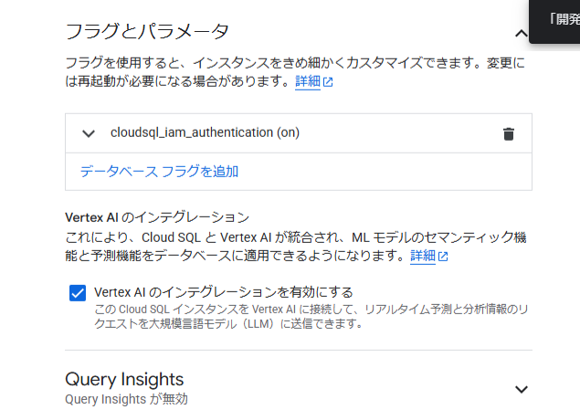 Cloud SQL は、MySQL、PostgreSQL、SQL Server の3つを選択できますが、Vertex AI との統合は、MySQL、PostgreSQL で設定可能で、SQL Server にはまだ対応されていない様です。