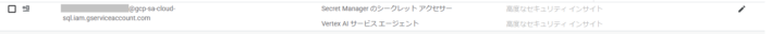 Cloud SQLのサービスアカウントに、Vertex AI サービス エージェントとSecret Manager のシークレット アクセサーのロールを追加しました。