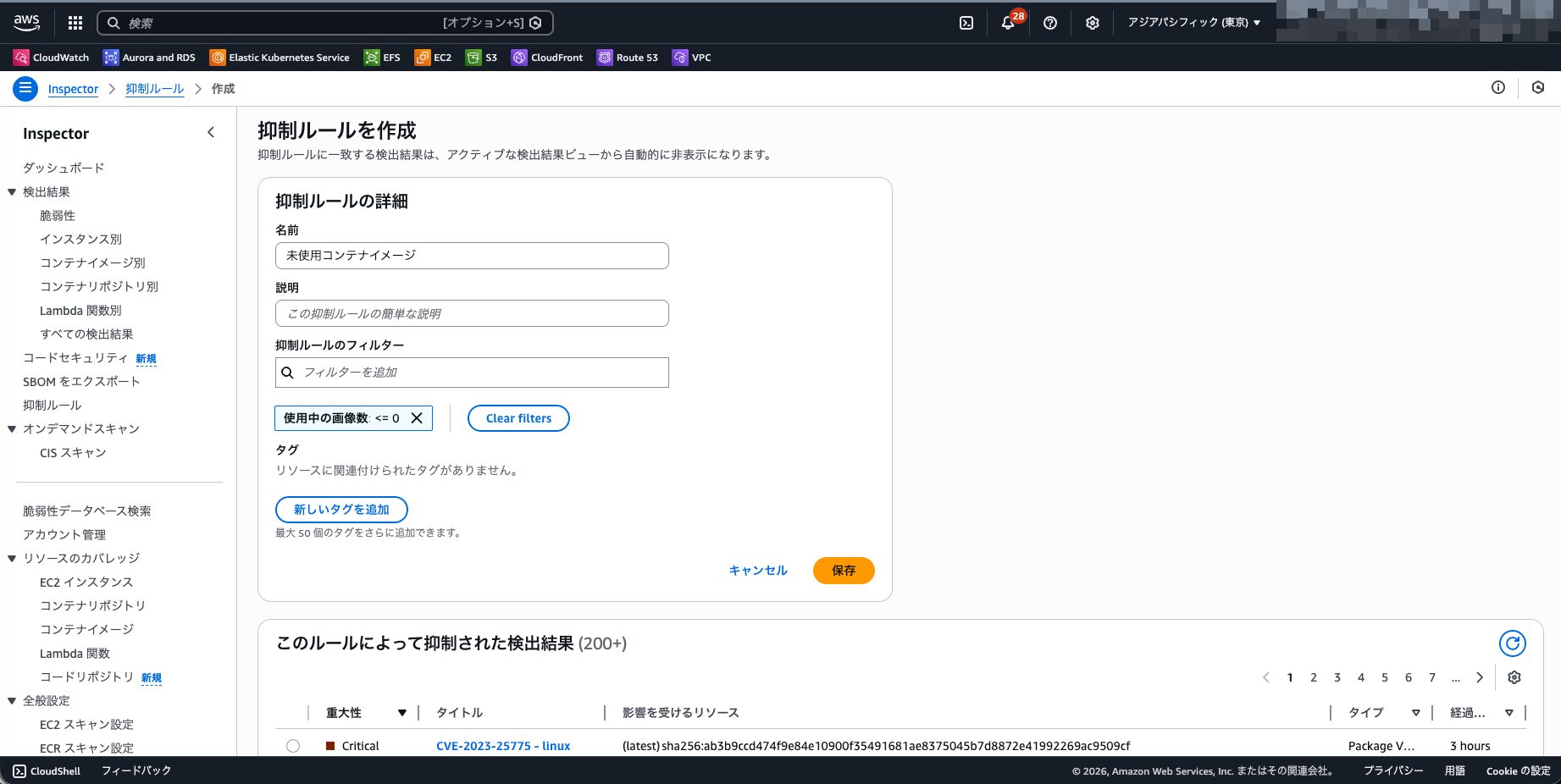 この問題を解決する案として、コンテナイメージがPushされる度に、Inspectorの抑止ルールを自動更新し、最新のコンテナイメージ以外の脆弱性を抑止対象とする方法をコチラで紹介しています。