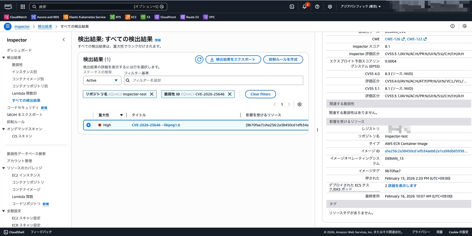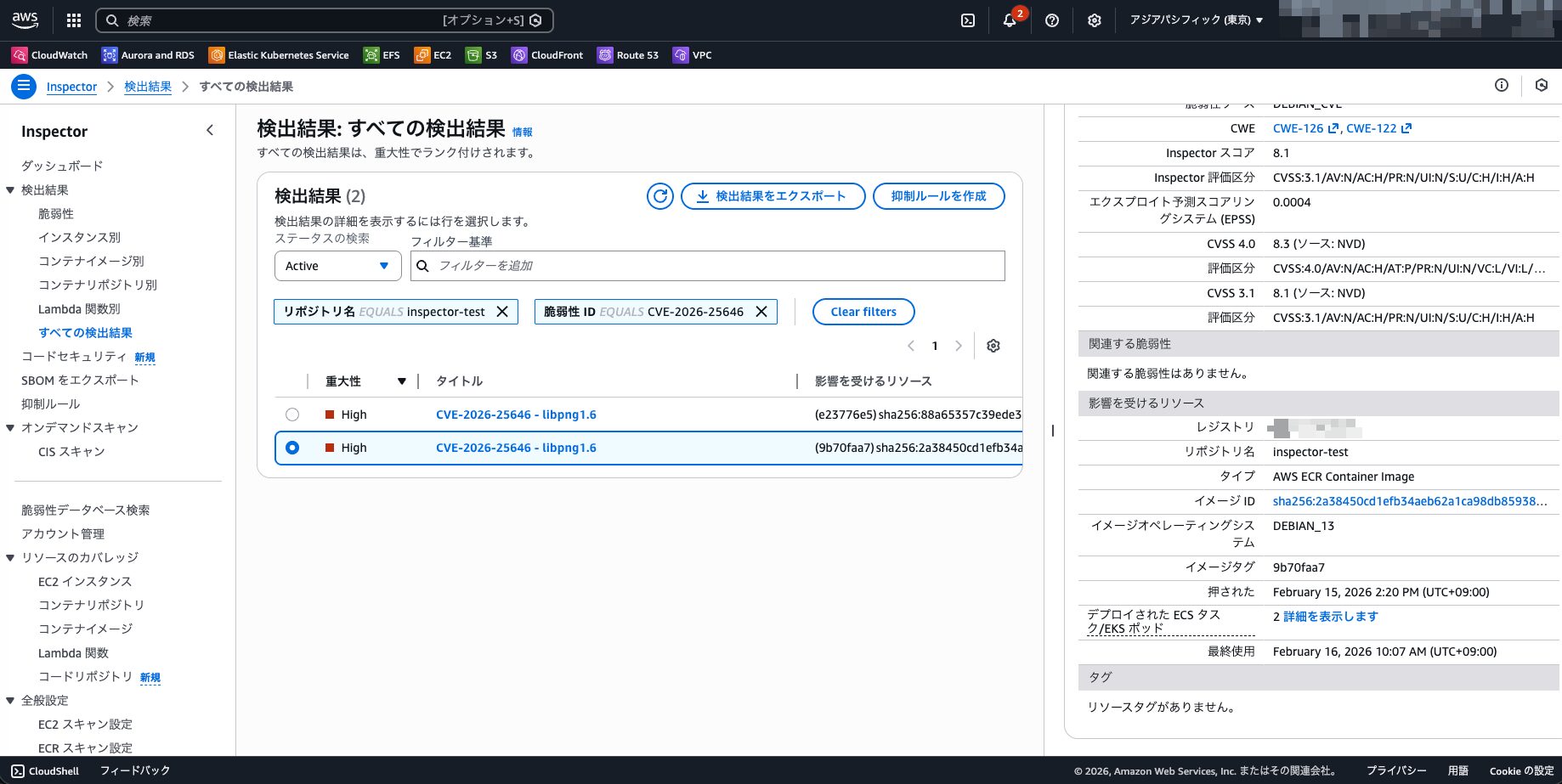 InspectorのECR継続スキャンにおいて、最新のコンテナイメージで検知した脆弱性は、基本的には古いコンテナイメージでも検知されます。