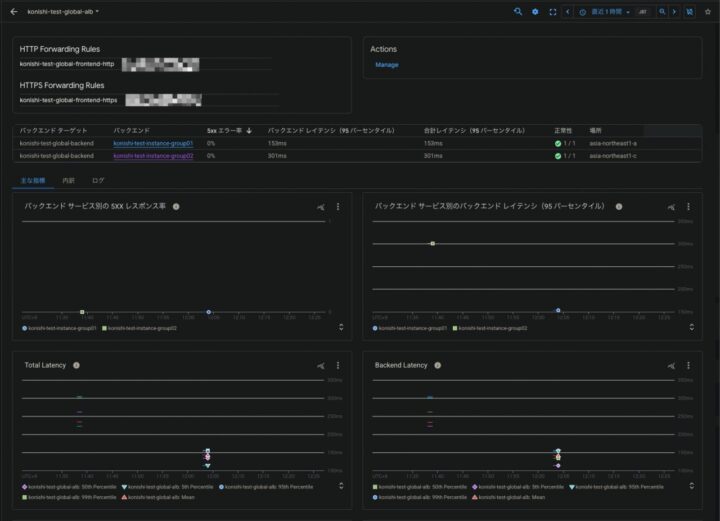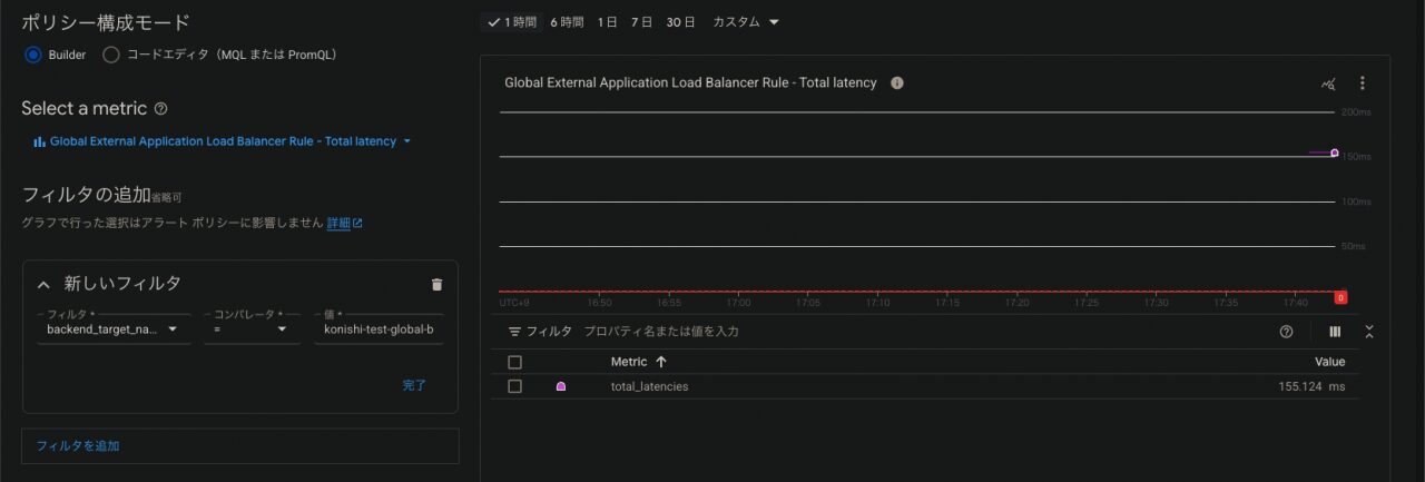 - メトリクス:Global External Application Load Balancer Rule > https > Total latency