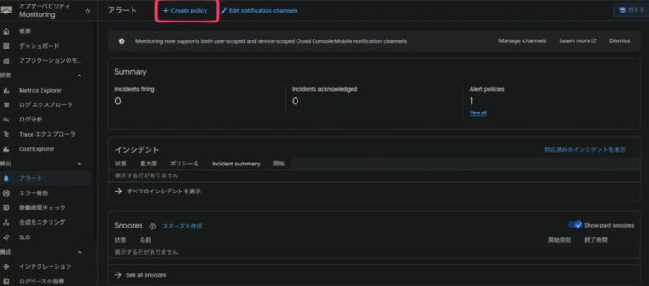 アラートポリシーの作り方はアラート ポリシーを作成する方法 を参考にします