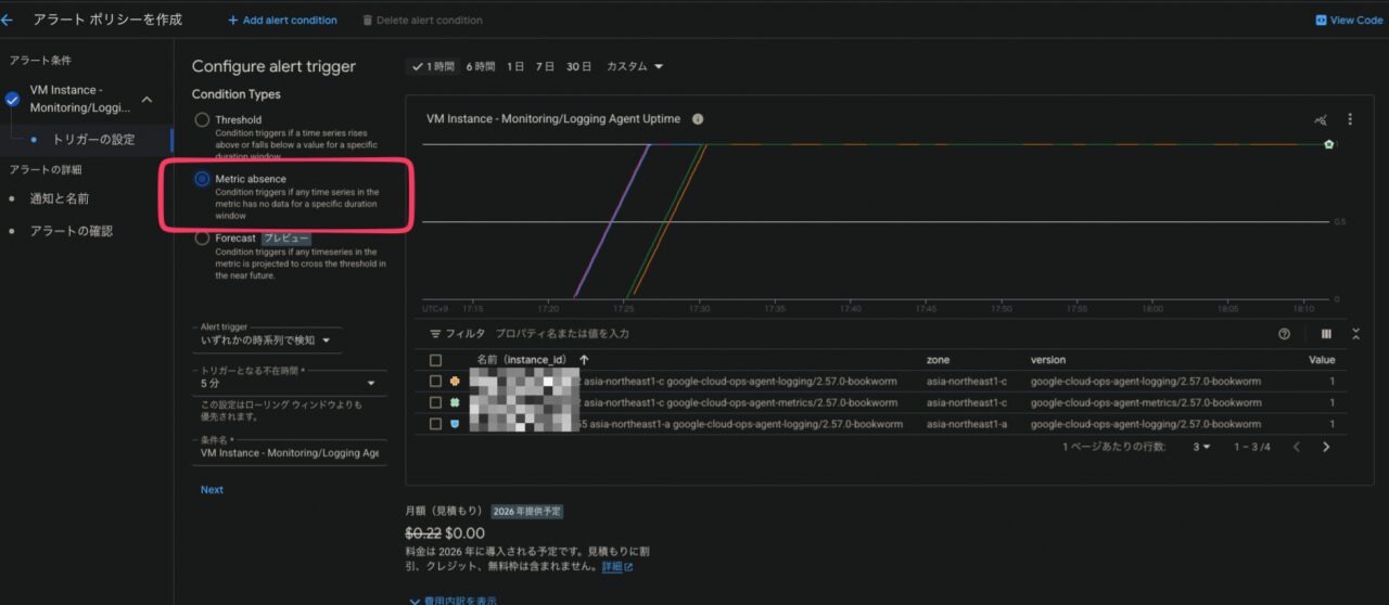 “Monitoring/Logging Agent Uptime”というメトリクスを使用します